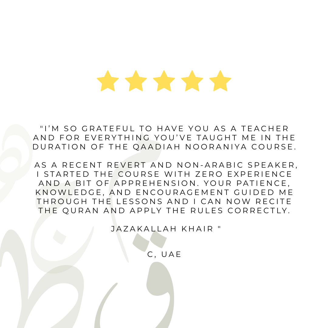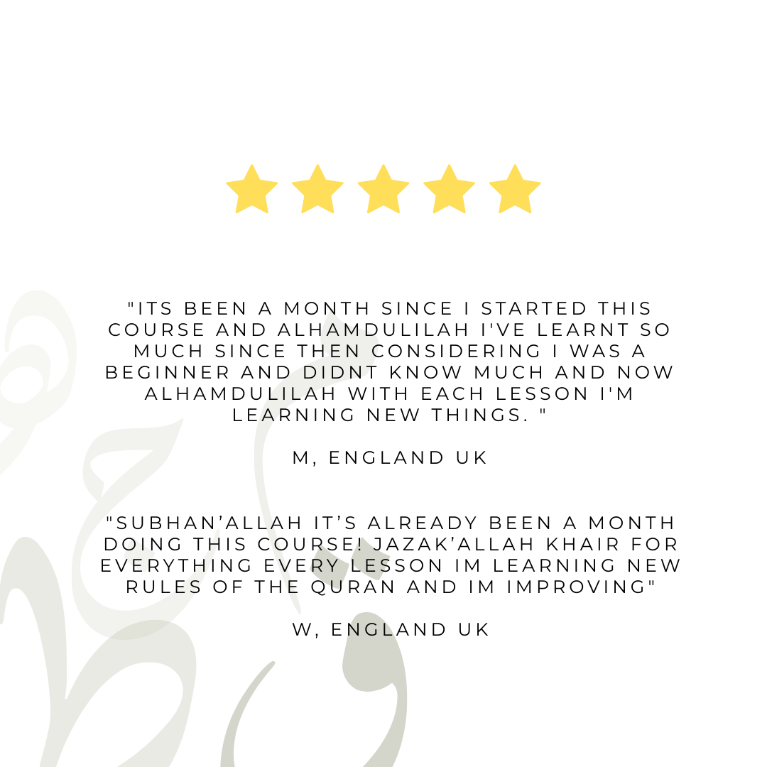 This course is ideal for beginners who want to build a strong foundation in Qur’an reading.